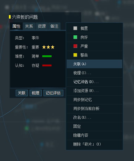,鼠标在任何碎片上,启动关联(非梳理模式)