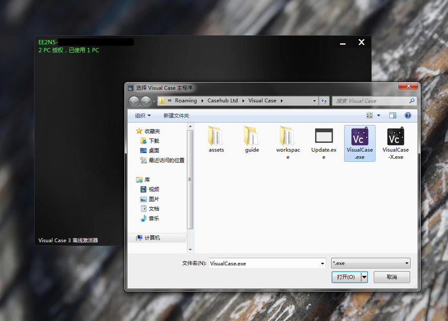 二,点击 “装载 Visual Case”,选择已安装的 Visual Case 主程序;