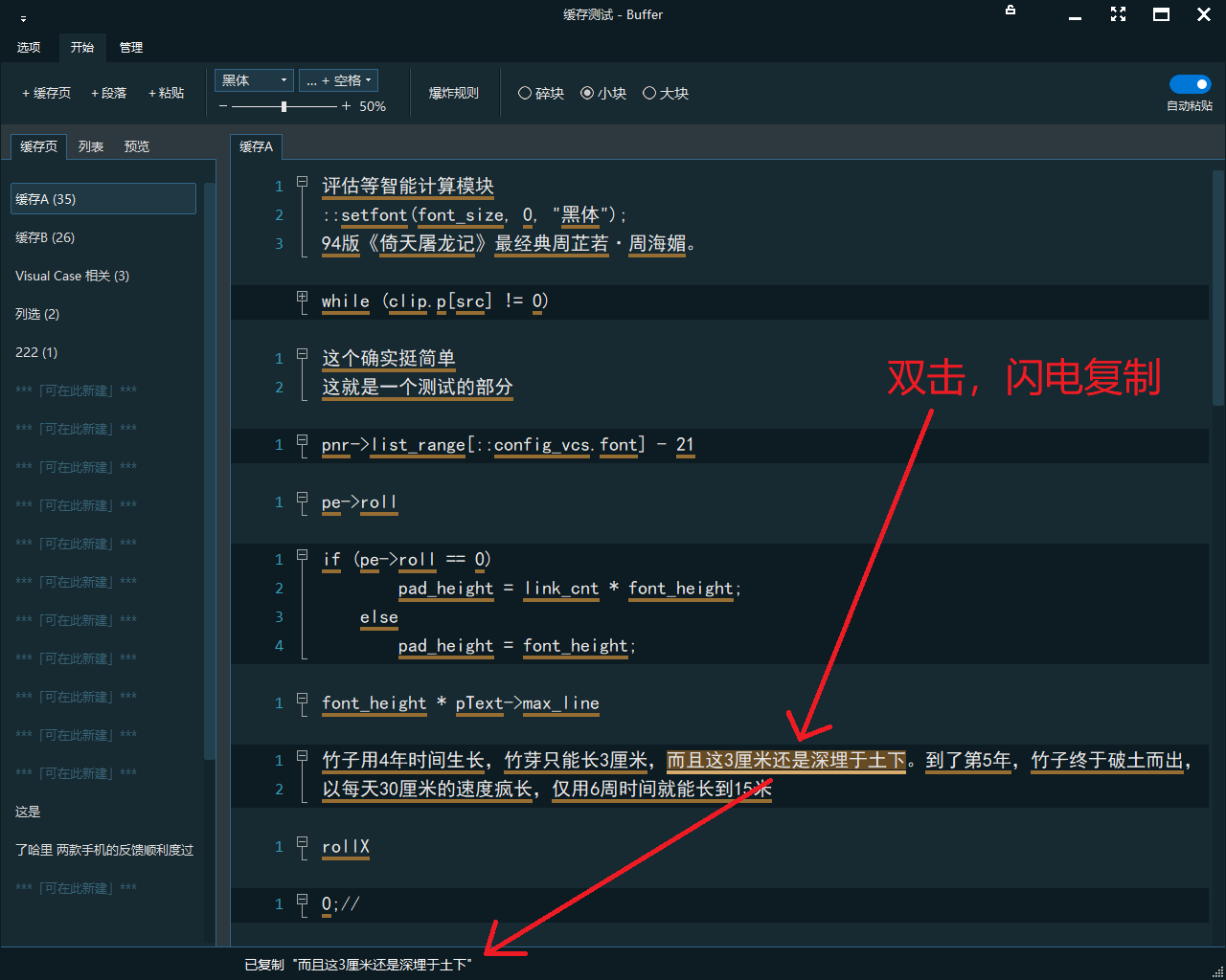 不管是手动粘贴/录入数据,或者自动粘贴的数据,大爆炸都会实时进行,爆炸后的文本单元(粗下划线)支持闪电复制。