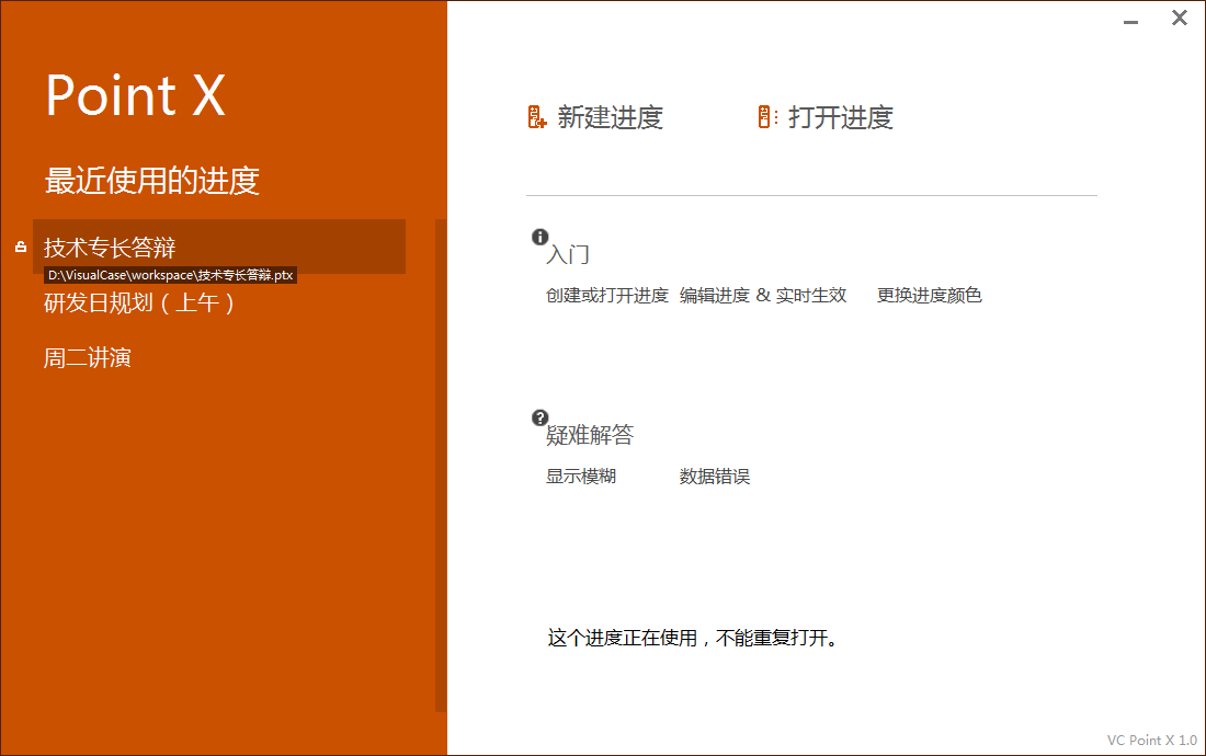 方法:从 Point 开始页创建或打开进度。