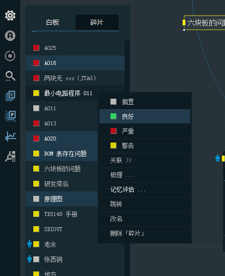 3. 在「白板管理器」的「碎片」列表中,右键某个碎片,可直接调整